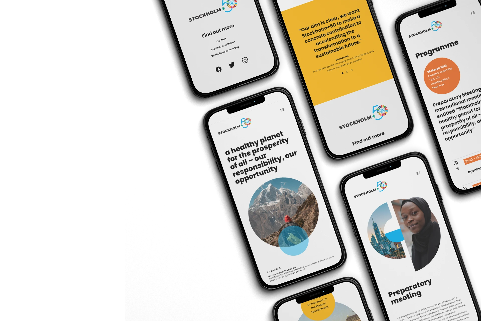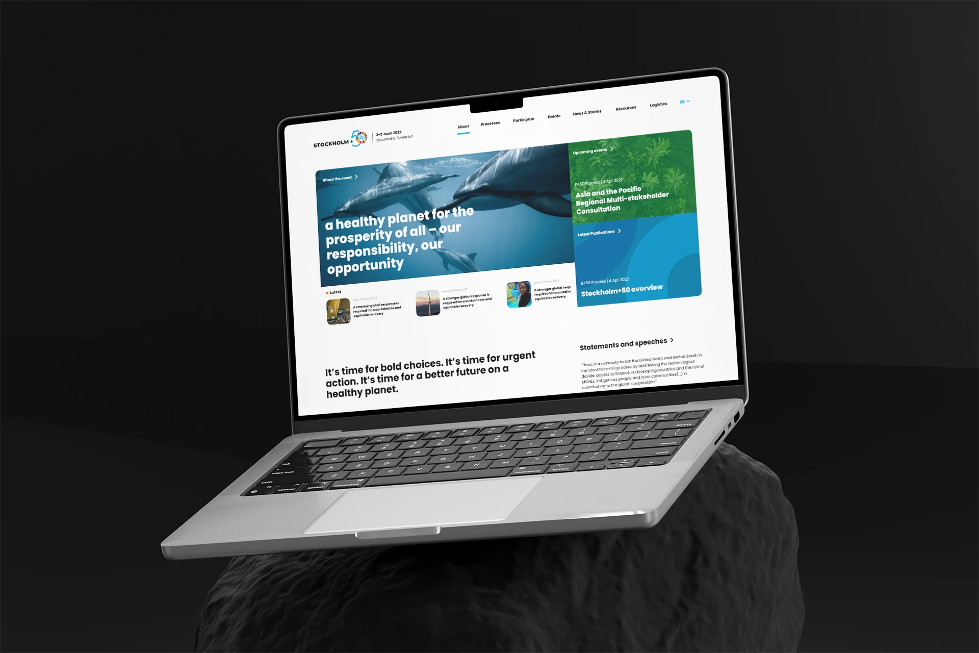 For the UN’s Stockholm+50 summit, I played a key role in bringing the visual ecosystem to life. I designed the event website and produced the full suite of digital and print assets.